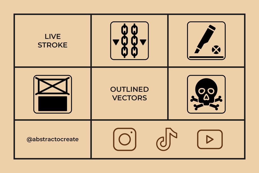 • The icons have been built in an Android grid of 48px with a stroke of 2px that can be edited in Adobe Illustrator